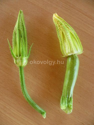 Cukkíni hím (balra)- és nővirágai (jobbra)
